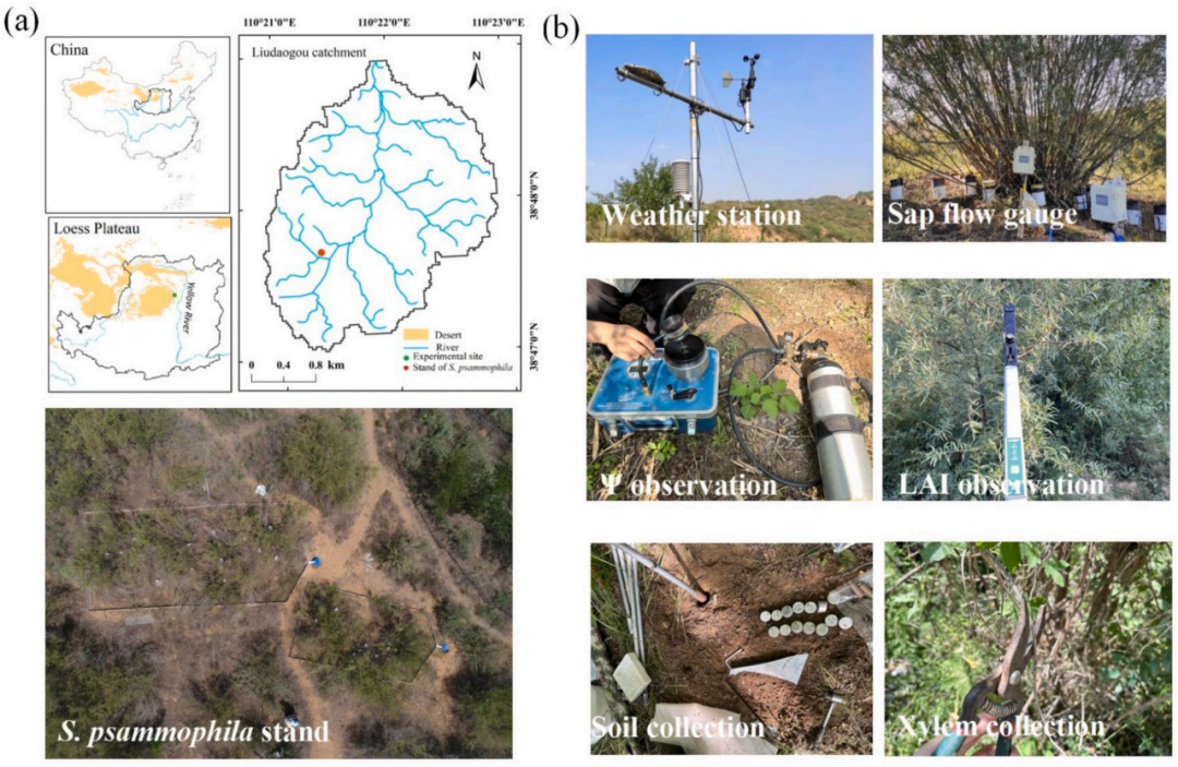 本研究团队在2019–2021年连续三年间,走进陕西神木六道沟流域,系统监测沙柳林的土壤水分、液流变化、叶片生理特性以及稳定同位素(δ²H、δ¹⁸O、δ¹³C)指标,力求揭开沙柳如何在干旱胁迫下实现“智慧用水”的秘密。