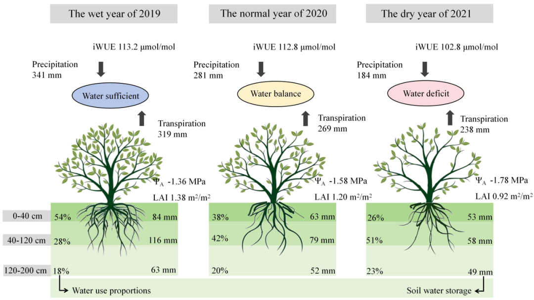 并不依赖深层土壤水,而是主动调控生理活动应对水分波动。